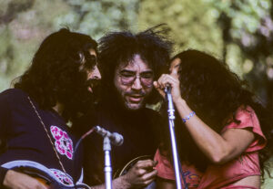 The band featured the legendary rock mandolin player, David Grisman, who particularly impressed me because he played his mandonin like a rock star. He gathered a bunch of great players—Richard Greene (fiddle), David Nichtern (guitar & vocals), Taj Mahal (bass & vocals), Jerry Garcia (banjo), and guest Maria Muldaur singing her hit single, Midnight on the Oasis, penned by Nichtern. Playing cornet with Nichtern was Bob Gurland who sat in and was identified as participating with the GAMB a few months later. Also on stage that day was Doc & Merle Watson with bass being covered by Michael Coleman.