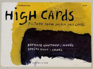 | Corita Kent, Artist High Cards , 1974 Picture Poem Poster Post Cards Bernard Gunther: words Corita Kent: colors Medium: Photomechanical reproduction Dimensions: 5 x 7 in. (cm. 12.7 x 17.8) (16/45) | ![]() |