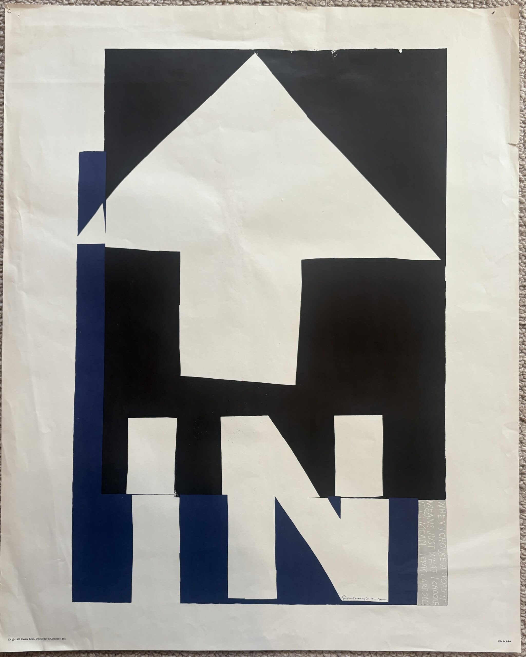 | In (1964) Reproduction poster Dimensions: 30" x 24" (cm. 76 x 61) Archive ID: 64-07 IN © 1969 Corita Kent | ![]() |